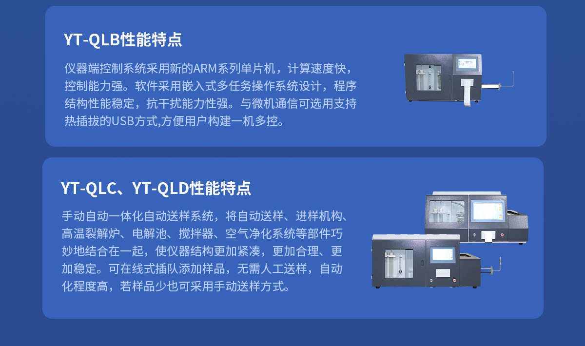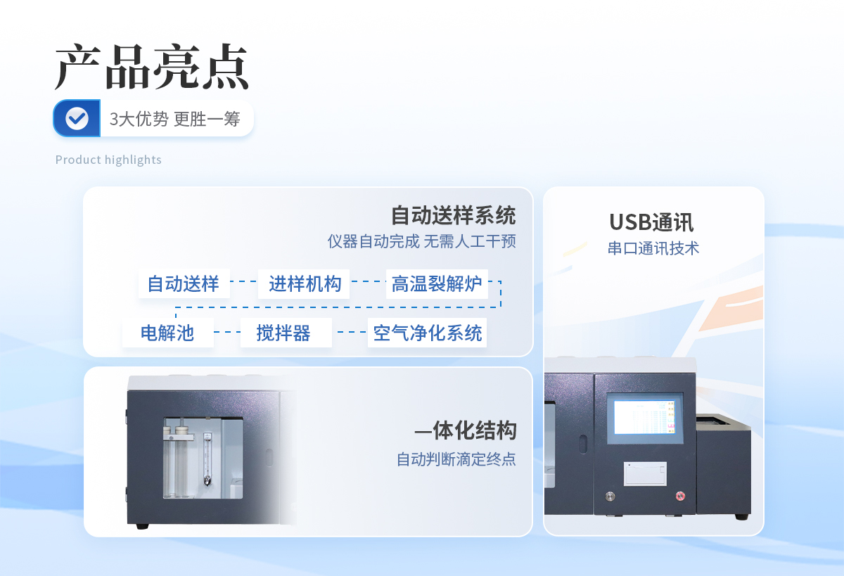 | 1、 手自一體化自動送樣系統,將自動送樣、進樣機構、高溫裂解爐、電解池、攪拌器、空氣凈化系統等部件巧妙地結合在一起,使儀器結構更加緊湊,更加合理、更加穩定。可在線式插隊添加樣品,無需人工送樣,自動化程度高,若樣品少也可采用手動送樣方式。 | 2、采用—體化結構,自動判斷滴定終點,縮短了實驗時間。所有關鍵部件均采用了設計理念及進行了嚴格的控制,確保儀器能長時間穩定運行。 | 3、采用特別的數據采集網絡及多級校正技術,確保高、中、低硫含量測試結果的準確性。 | 4、送樣機構采用電子電解液分子濃度采集電路,可靠性高,不會產生過電解現象。 | 5、串口通訊技術,可采用usb通訊,兼容性好,具有廣泛的適用性。 | 6、自由設置送樣時間及預置溫度,采用進口霍爾元件控制送樣位置。 | 7、采用剛玉瓷舟,減少卡樣的可能。一次可放1-24個樣由程序控制實現自動升溫、控溫、送樣、測定,結果自動存盤、自動打印,并可中途在線式插隊添加試樣,大大地提高了工作效率,真正實現無人值守; | 8、采用庫侖滴定法進行測定,測定時間可根據不同試樣自動判斷,速度優于艾士卡重量分析法和高溫燃燒中和法; |