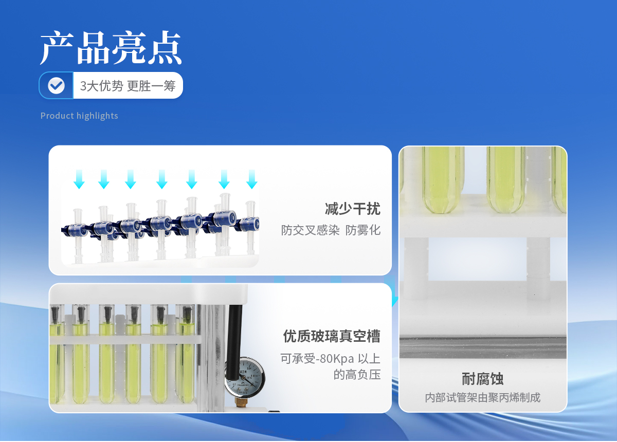 | 可處理樣品數(shù):12 位 | 真空玻璃槽尺寸:190*100*170mm | 耐壓能力:優(yōu)于 80Kpa(65Kpa 是我們建議的耐壓能力) | 穩(wěn)定壓力范圍:0-80Kpa 可調(diào) | 配套試管架尺寸:?13/ ?16,長(zhǎng)度 145mm 以下。 |