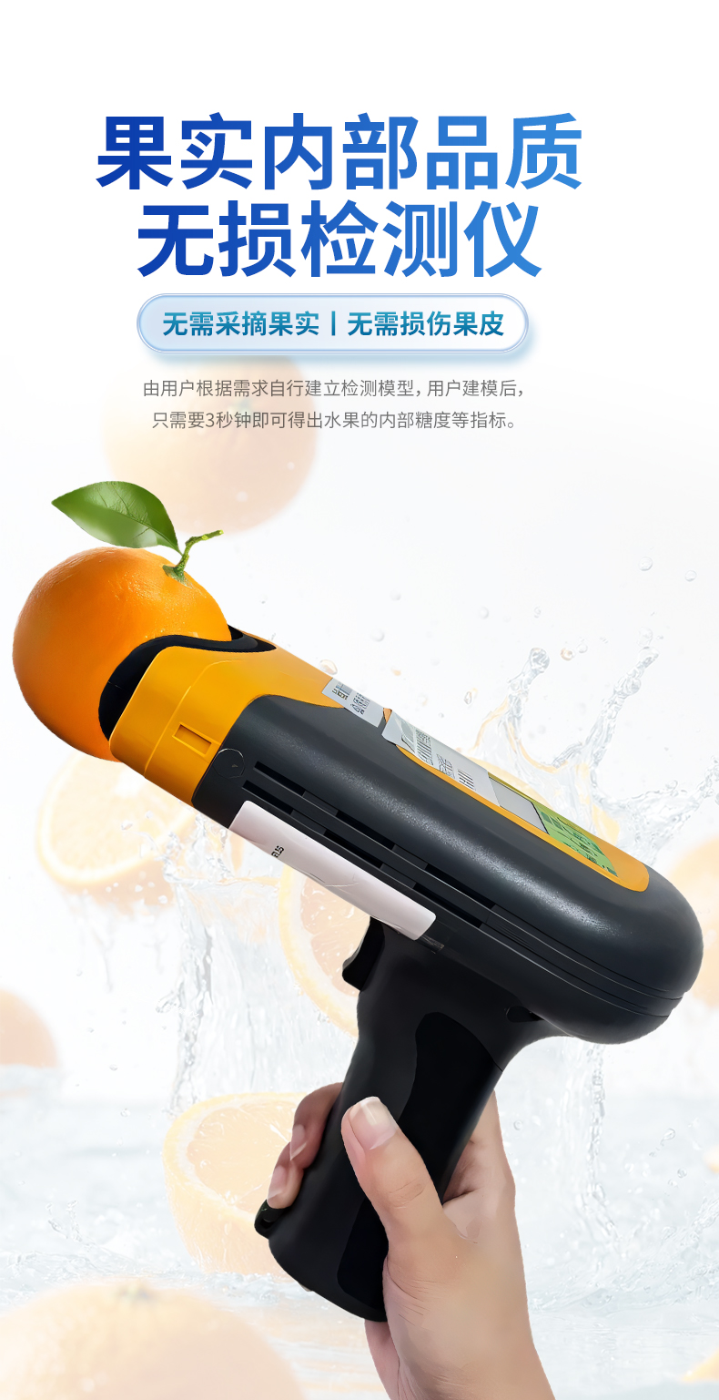 產品描述:儀器介紹:果實內部品質無損檢測儀是一款便攜式的果實質量檢測儀,可以方便的檢測水果內部的糖度、干物質等指標,由用戶根據需求自行建立檢測模型,用戶建模后,只需要3秒鐘即可得出水果的內部糖度等指標。儀器內置可充電鋰電池,單次充滿后可連續檢測2000次,檢測結果實時顯示在設備屏幕上,用戶可以通過數據線將檢測數據上【詳情】  更新時間:2026-03-01